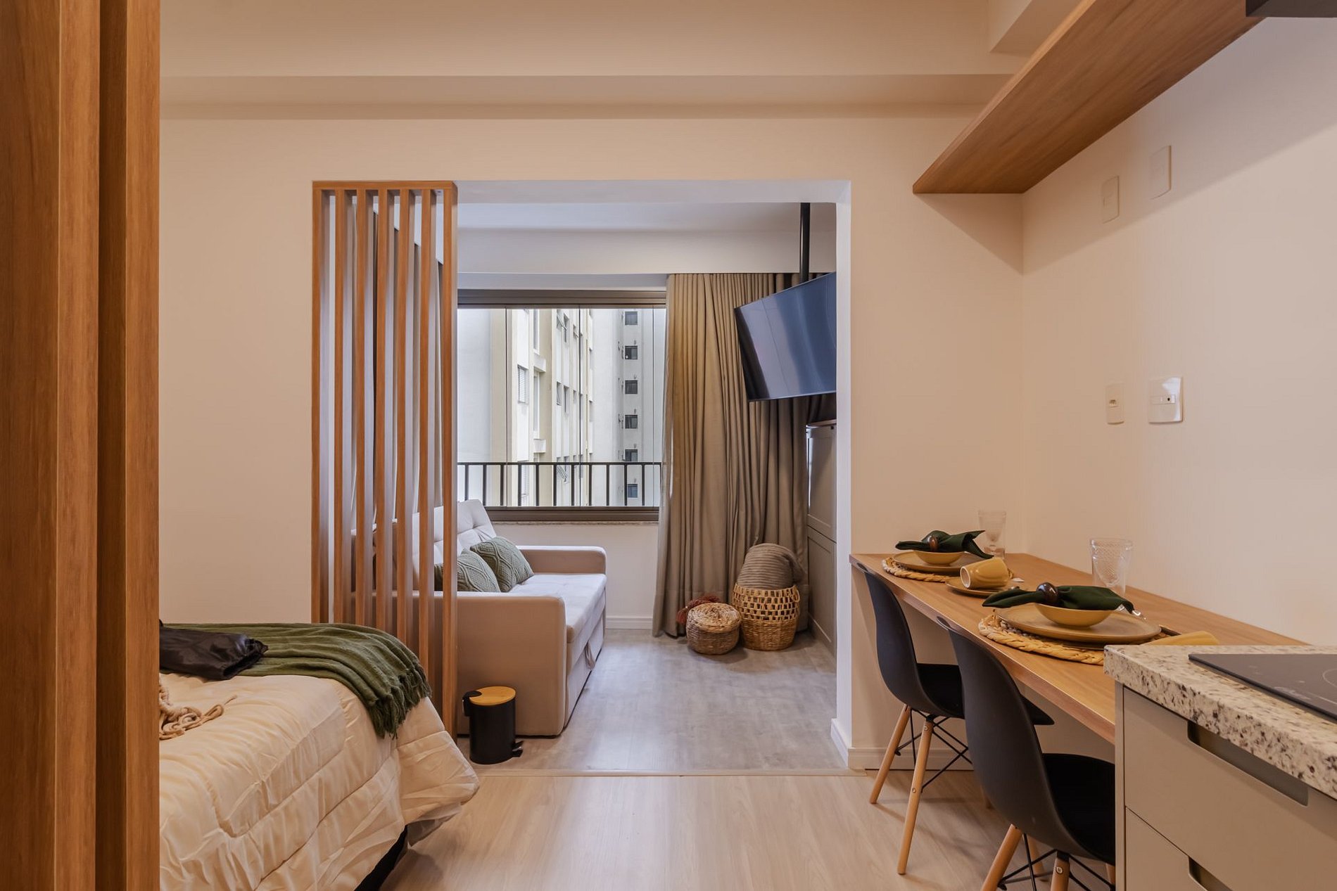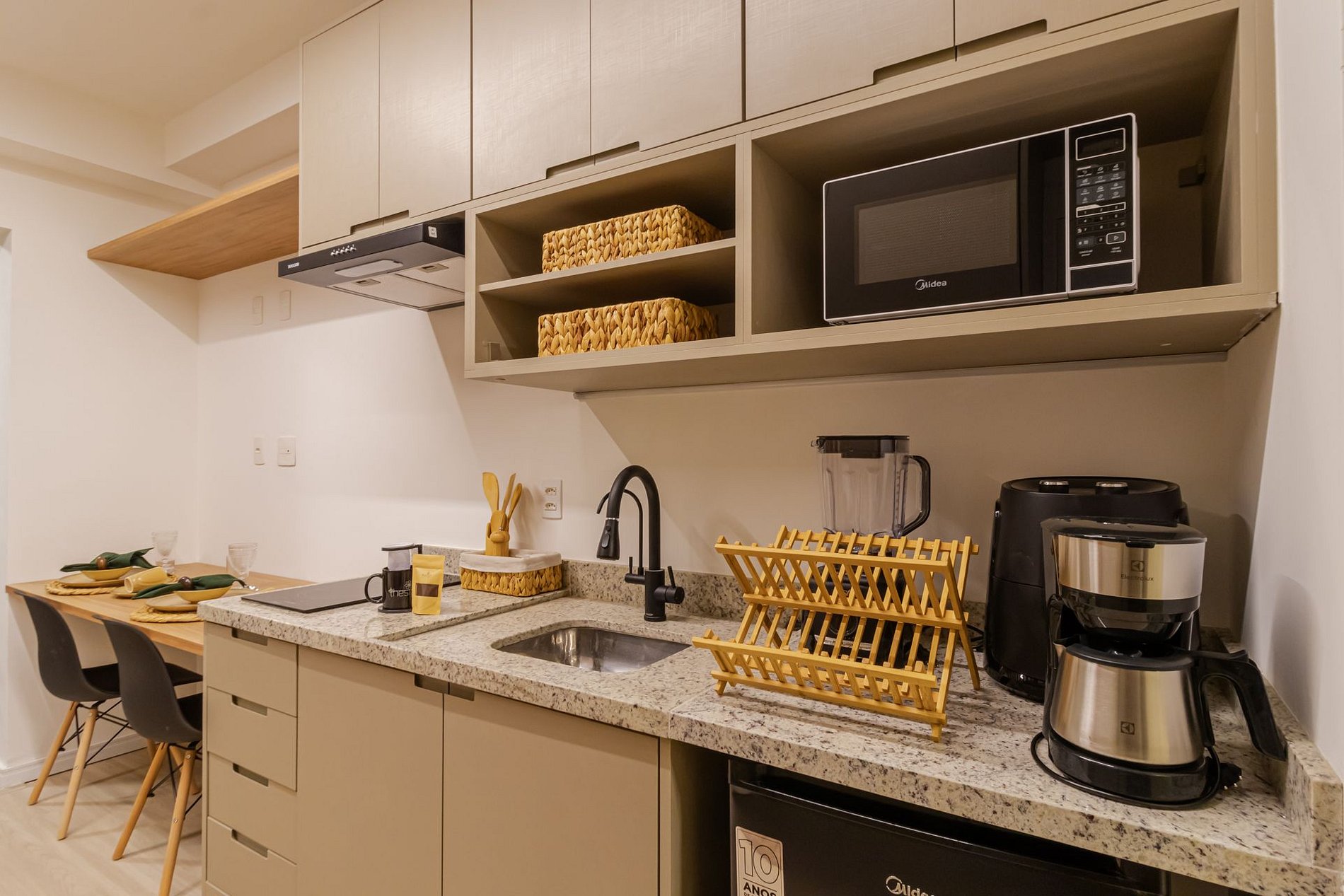 Studio moderno e acolhedor na Vila Clementino, pensado para quem busca conforto com propósito. O ambiente de 25m² é higienizado com produtos especiais e preparado para criar uma experiência sensorial única, com enxoval premium e detalhes voltados à biofilia. A suíte é equipada com cama de casal, ar-condicionado (quente/frio), TV, armário e roupa de cama de qualidade (lençóis 300 fios e toalhas soft touch). O banheiro dispõe de chuveiro elétrico, secador de cabelo, toalhas e produtos de higiene personalizados (shampoo, condicionador e sabonete). A mini cozinha é funcional, com geladeira, cooktop, micro-ondas, airfryer, utensílios de café, pratos, taças e panelas. O apartamento conta com Wi-Fi de 200 Mbps, tomada USB dupla e uma varanda agradável. O acesso ao apartamento é prático e seguro, feito por self-check-in com fechadura eletrônica. As áreas comuns do edifício incluem um espaço de coworking para produtividade, jardim, churrasqueira para momentos de lazer e uma lavanderia OMO compartilhada (com custo). A localização é um grande diferencial. Você estará ao lado do Hospital São Paulo e da Unifesp, entre as estações de metrô Santa Cruz (Linha Azul) e Hospital São Paulo (Linha Lilás), e próximo ao Shopping Santa Cruz. A região é cercada de clínicas, bares, mercados e restaurantes. - Enxoval Completo: Lençóis 300 fios e toalhas Soft touch - Wi-fi e TV - Cozinha Completa - Secador de cabelo - Fechadura Inteligente - Shampoo, condicionador e sabonete líquido - Condomínio conta com espaço Churrasqueira Espaço wellness, Piscina coberta, Lavanderia, Festas e praça externa e Fitness flats (consultar disponibilidade) - Aquecimento Central - Tomada USB Dupla - Experiencia sensorial: o espaço é preparado com aromas naturais brasileiros, proporcionando uma experiência única com home spray da The Sign. Locais próximos: Parque Ibirapuera - 1,9km; Aquário de São Paulo - 3,9km; Casa Modernista - 1,7km; Facilidades: Minuto Pão de Açúcar - 97m; Metrô Santa Cruz - 1,7km; Estação Hospital São Paulo - 550m; Unifesp - 550m. Alguns detalhes do ambiente podem variar com o tempo, mas o conforto e a experiência permanecem os mesmos. Fotografias atualizadas em Outubro/2025.