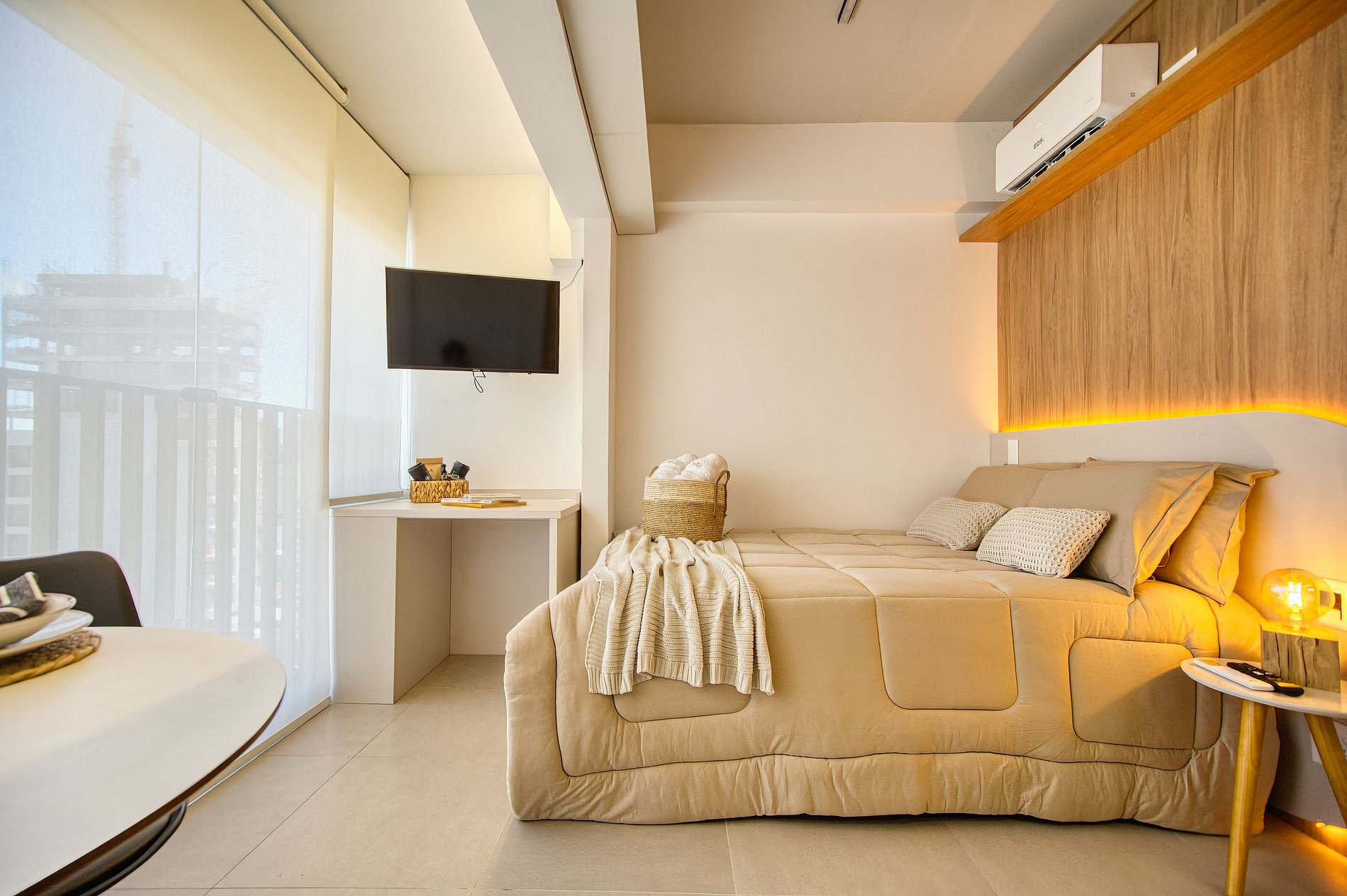 Studio com conforto, estilo e muita comodidade! Sua estadia é nossa prioridade! Se surpreenda com nossos serviços especiais e personalizados.